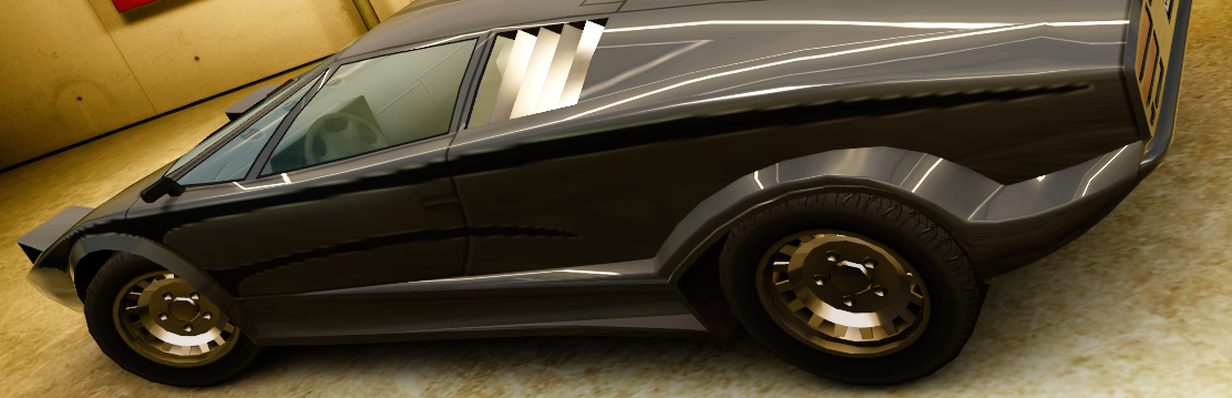 It’s body.tex uses a diffuse enviroment map shader type, which gives it the reflective clearcoat look. The resolution is 512x512 pixels for all vanilla cars.